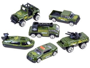 ✔ 6 metalowych autek wojskowych – różnorodne pojazdy w stylu wojskowym, idealne do zabawy i kolekcjonowania.